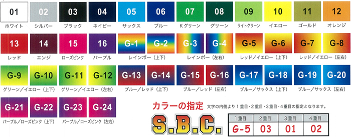 文字内容を40色のカラーチャートからお好きなカラー配色を決めてください。